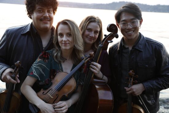 The Glass House String Quartet unites four longtime friends and collaborators—violinists Allion Salvador and Vanessa Moss, violist Gerald Liu, and cellist Lauren McShane—whose shared history spans a decade of music-making across the Pacific Northwest. Their name honors the Glass House of Fern Grove on Vashon Island, a striking architectural space designed by Seth Grizzle and owned by Ruth True, where the quartet gave their first performance. With the Puget Sound to one side and forest on the other, that glowing space became both a home for the ensemble: a meeting place of artistry, friendship, and the natural world. Performances of Glass House invite the audience to join them in the intimacy of chamber music. They create artistic experiences celebrating small communities, the natural beauty of the Pacific Northwest, and the love of family. Collectively, the members of the Glass House String Quartet perform with orchestras across Washington and beyond, teach and mentor the next generation of musicians, and champion chamber music as a space for shared listening and genuine human connection. Whether in a concert hall, a woodland glasshouse, or a small community gathering, their performances invite audiences into that same spirit of light, reflection, and joy.